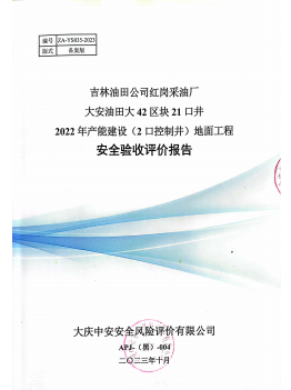 吉林油田公司紅崗采油廠大安油田大42區(qū)塊21口井2022年產(chǎn)能建設(shè)(2口控制井)地面工程 安全驗(yàn)收評(píng)價(jià)報(bào)告