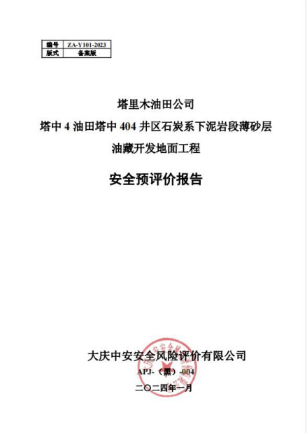 塔里木油田公司塔中4油田塔中404井區石炭系下泥巖段薄砂層油藏開發地面工程安全預評價 |