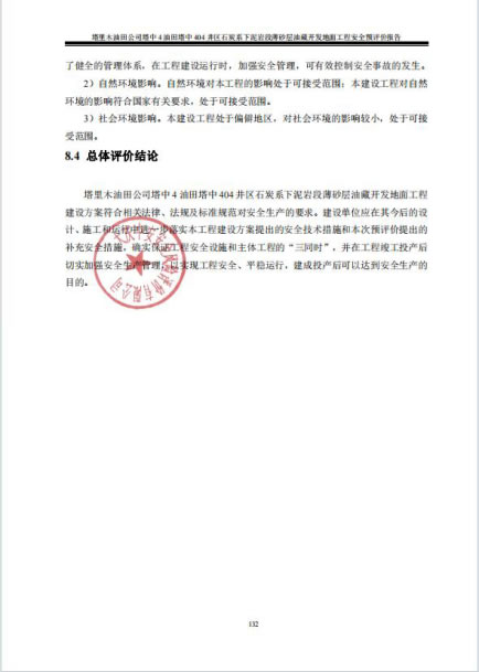 塔里木油田公司塔中4油田塔中404井區石炭系下泥巖段薄砂層油藏開發地面工程建設方案符合相關法律、法規及標準規范對安全生產的要求。建設單位應在其今后的設計、施工和運行中進一步落實本工程建設方案提出的安全技術措施和本次預評價提出的補充安全措施,確實保證工程安全設施和主體工程的“三同時”,并在工程竣工投產后切實加強安全生產管理,以實現工程安全、平穩運行,建成投產后可以達到安全生產的目的。 |