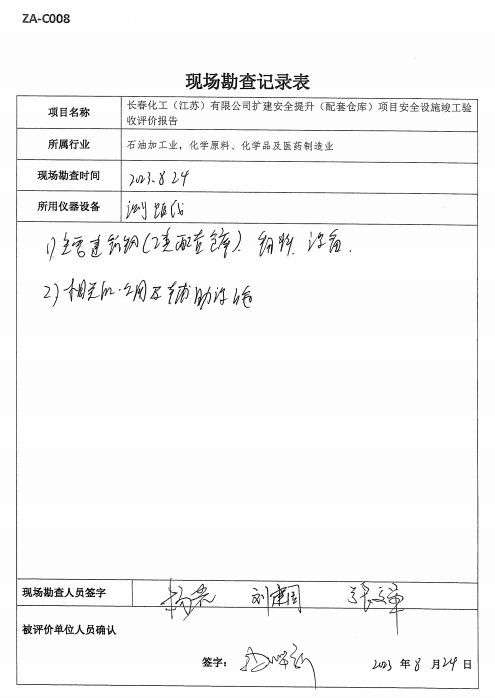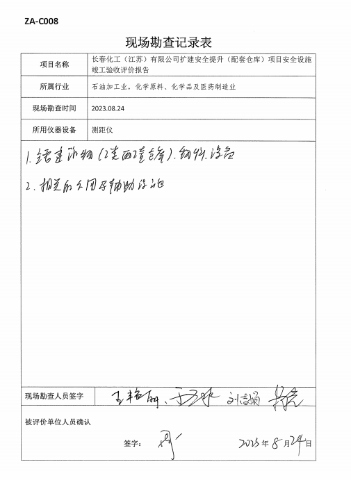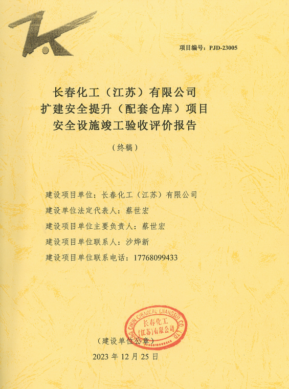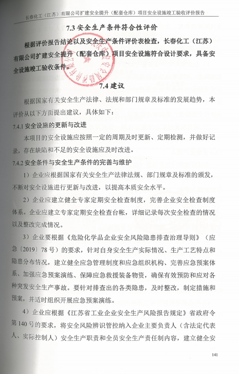 長春化工(江蘇)有限公司擴建安全提升(配套倉庫)項目安全設施竣工驗收評價報告