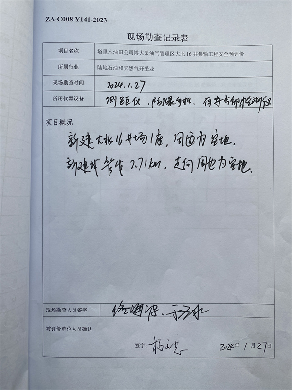 塔里木油田公司博大采油氣管理區大北16井集輸建設工程安全預評價報告