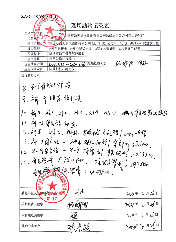 ②神-5集氣站:主要新建設備設施包括進站截斷清管區、清管發送區、集氣截斷區、集氣一體化集成裝置1套、DTY1250壓縮機1臺、采出液緩沖罐1具、采出液外輸泵橇1套、火炬1具、電控一體化集成裝置1座、燃氣發電機橇1座等。