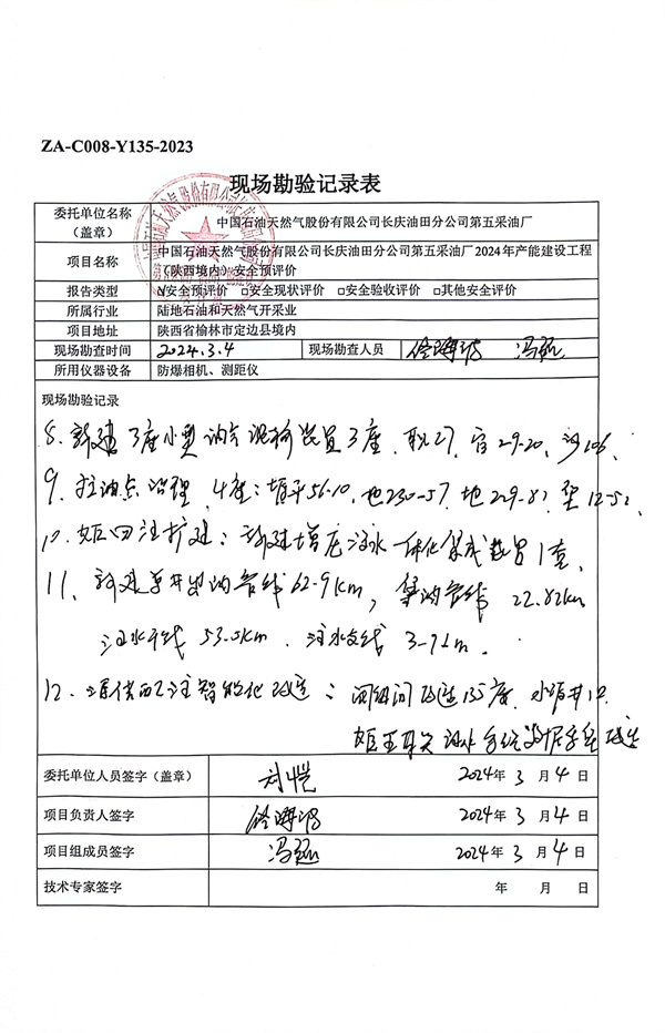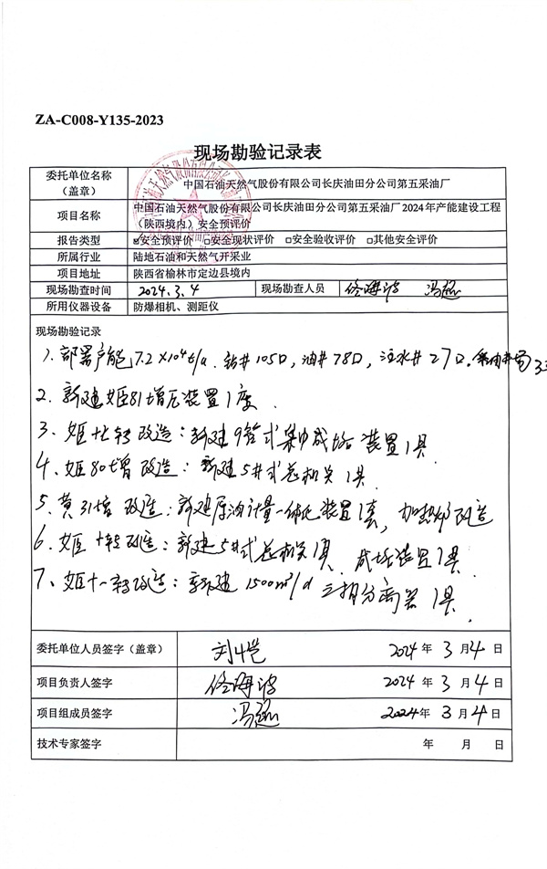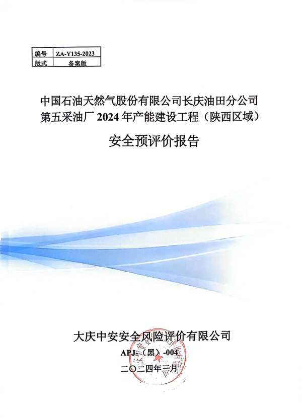 中國石油天然氣股份有限公司長慶油田分公司第五采油廠2024年產能建設工程(陜西區域)安全預評價 |