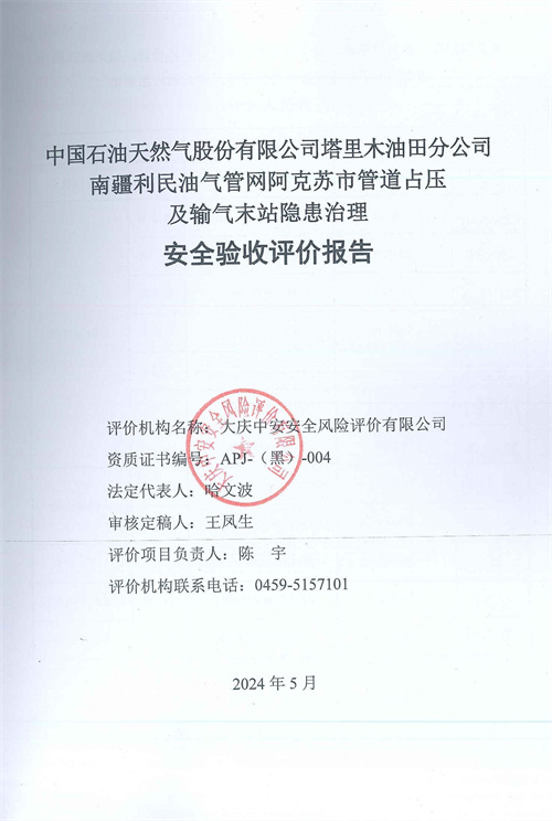 中國石油天然氣股份有限公司塔里木油田分公司南疆利民油氣管網阿克蘇市管道占壓及輸氣末站隱患治理安全驗收評價報告 |