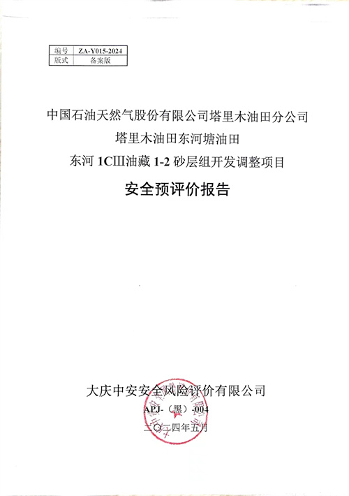 中國石油天然氣股份有限公司塔里木油田分公司塔里木油田東河塘油田東河1CⅢ油藏1-2砂層組開發調整項目安全預評價報告