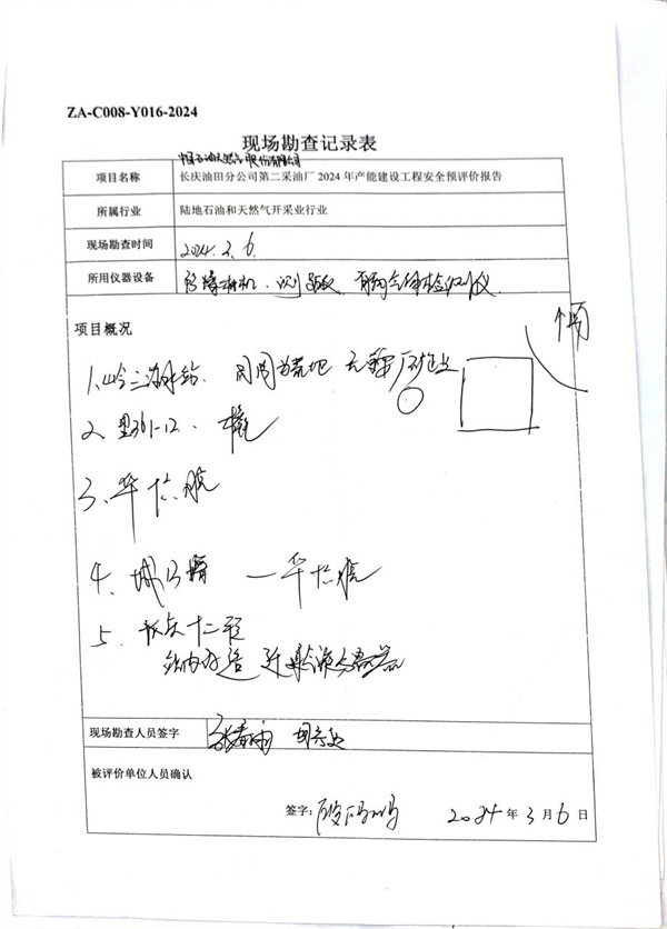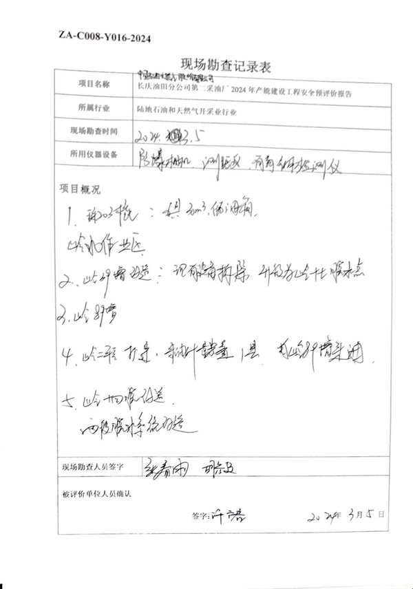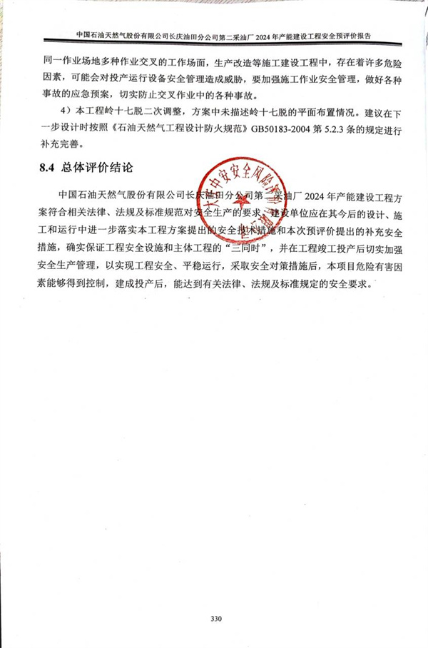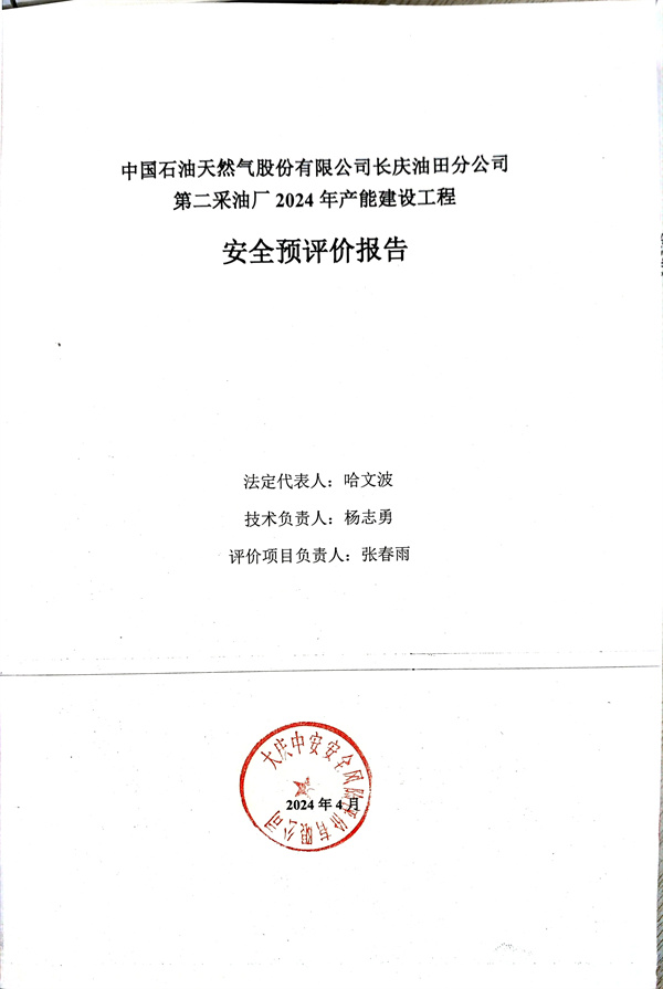 中國石油天然氣股份有限公司長慶油田分公司第二采油廠2024年產能建設工程安全預評價 |