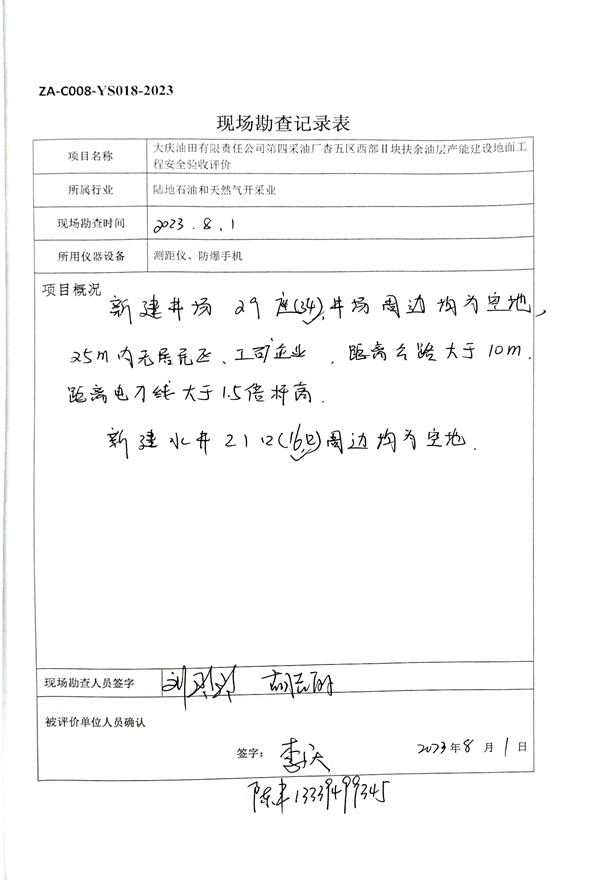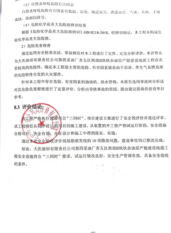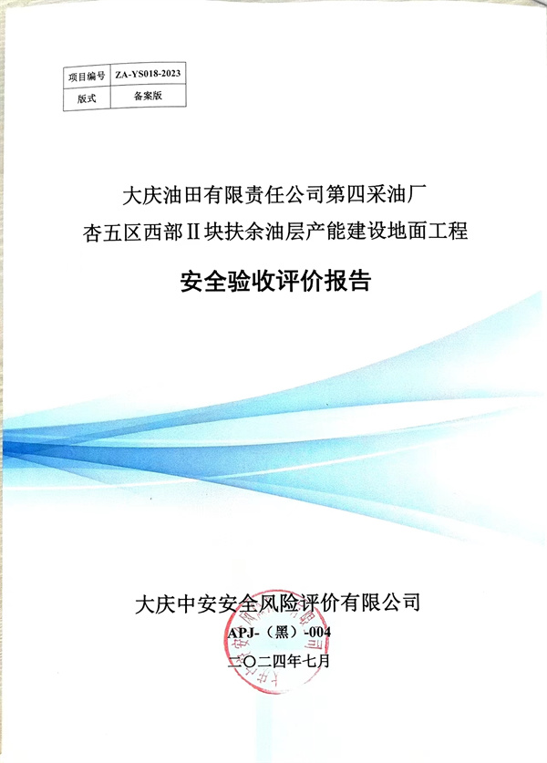 大慶油田有限責任公司第四采油廠杏五區西部ⅱ塊扶余油層產能建設地面工程安全驗收評價報告 |