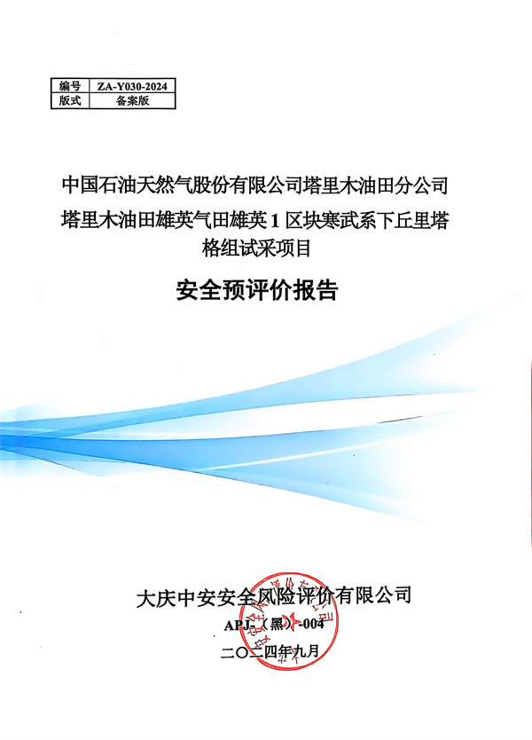 中國(guó)石油天然氣股份有限公司塔里木油田分公司塔里木油田雄英氣田雄英1區(qū)塊寒武系下丘里塔格組試采項(xiàng)目安全預(yù)評(píng)價(jià)報(bào)告 |
