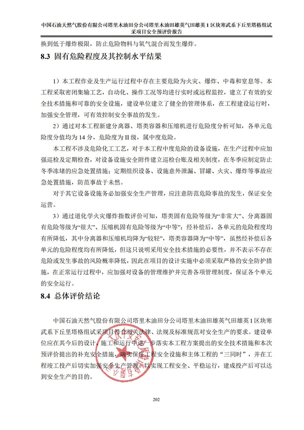 中國(guó)石油天然氣股份有限公司塔里木油田分公司塔里木油田雄英氣田雄英1區(qū)塊寒武系下丘里塔格組試采項(xiàng)目安全預(yù)評(píng)價(jià)