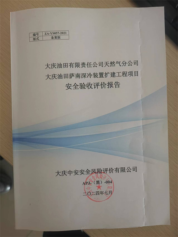 大慶油田有限責任公司天然氣分公司大慶油田薩南深冷裝置擴建工程項目安全驗收評價報告 |