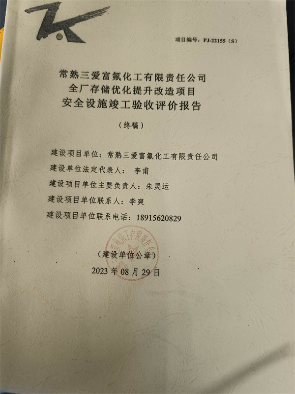 常熟三愛富氟化工有限責任公司全廠存儲優化提升改造項目安全設施竣工驗收評價報告 |